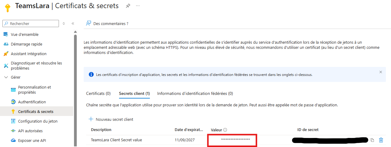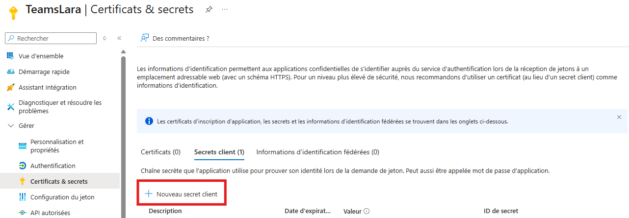 Étape 3 – Créer un Client Secret